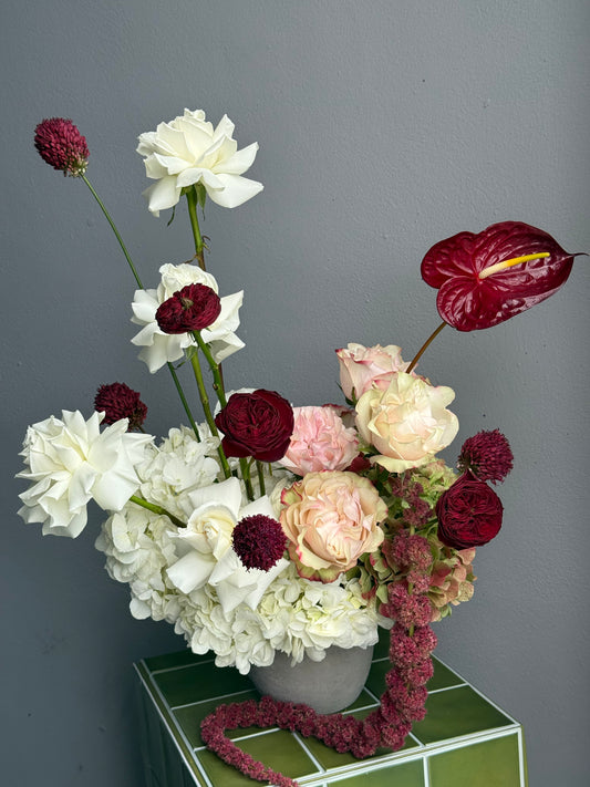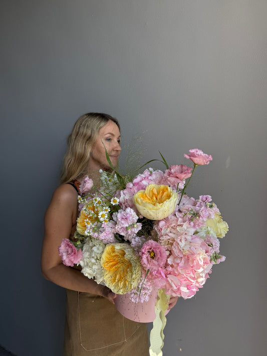 Flower Box “Strawberries and Cream” — roses, ranunculus, hydrangea