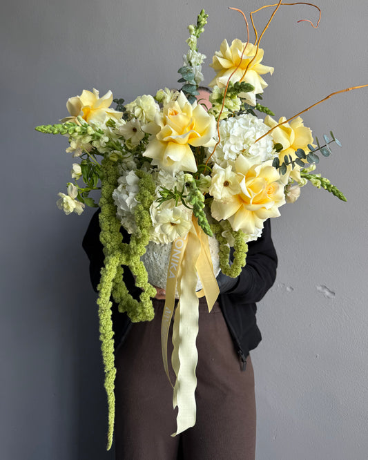 Flower Basket "Whispering Angel" - ranunculuses, hydrangeas