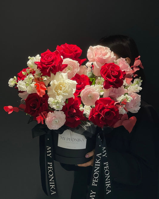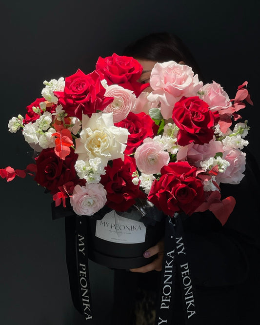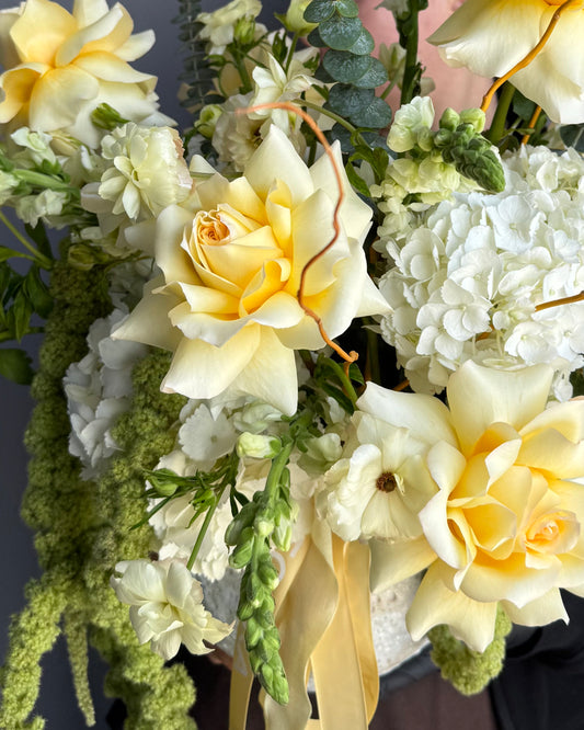 Flower Box “Aftertaste” — roses, ranunculus, hydrangea, calla lilies