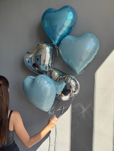 BALLOONS "BLUE & SILVER HEARTS"