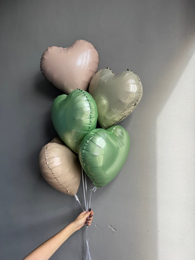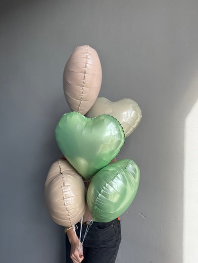 BALLOONS "BEIGE & GREEN HEARTS"