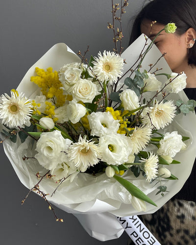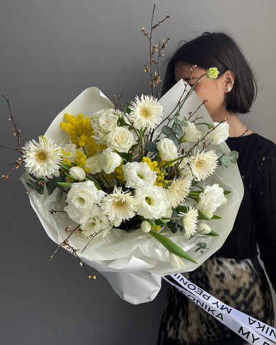 Bouquet “First Bloom” - gerberas, tulips, mimosas