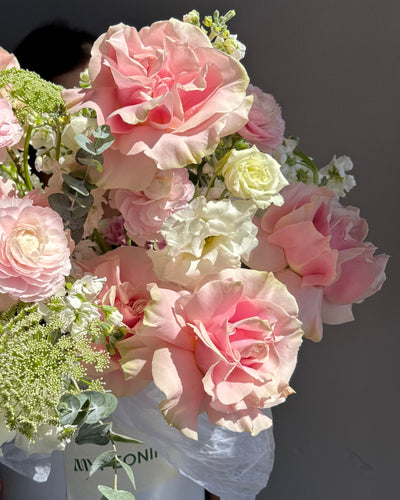 Flower Box “Strawberries and Cream” — roses, ranunculus, hydrangea