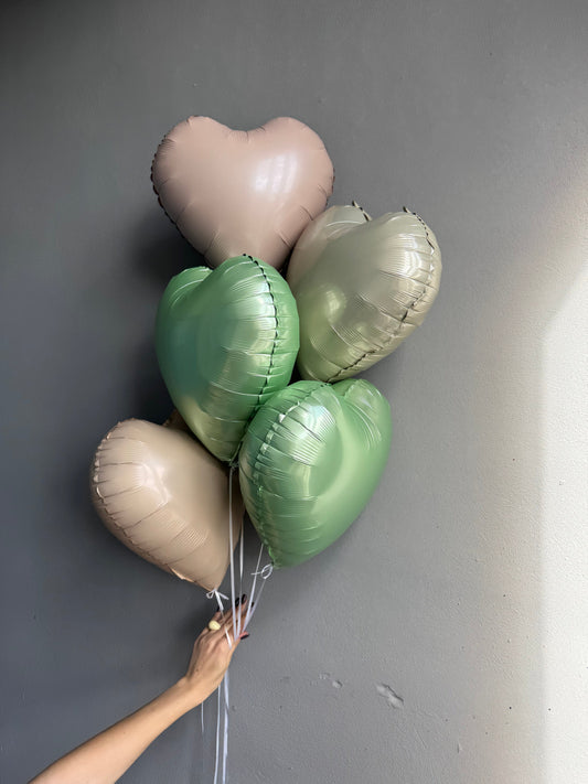 BALLOONS "BEIGE & GREEN HEARTS"