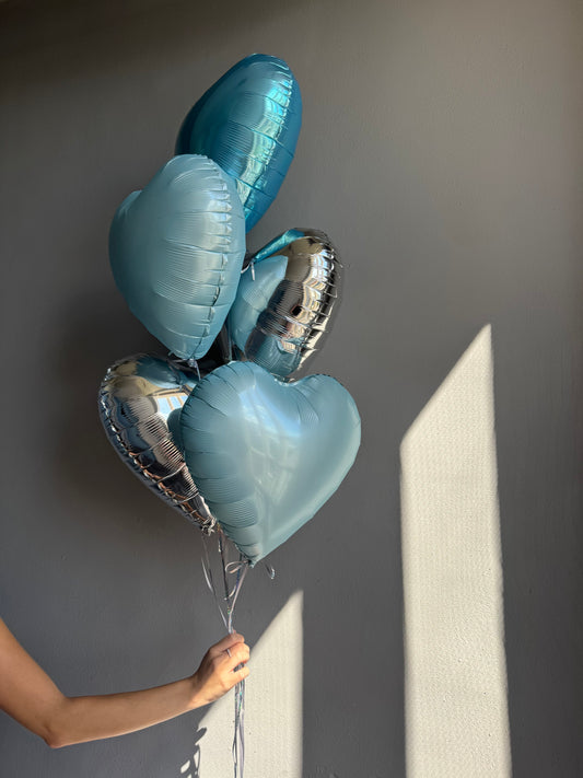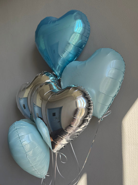BALLOONS "BLUE & SILVER HEARTS"