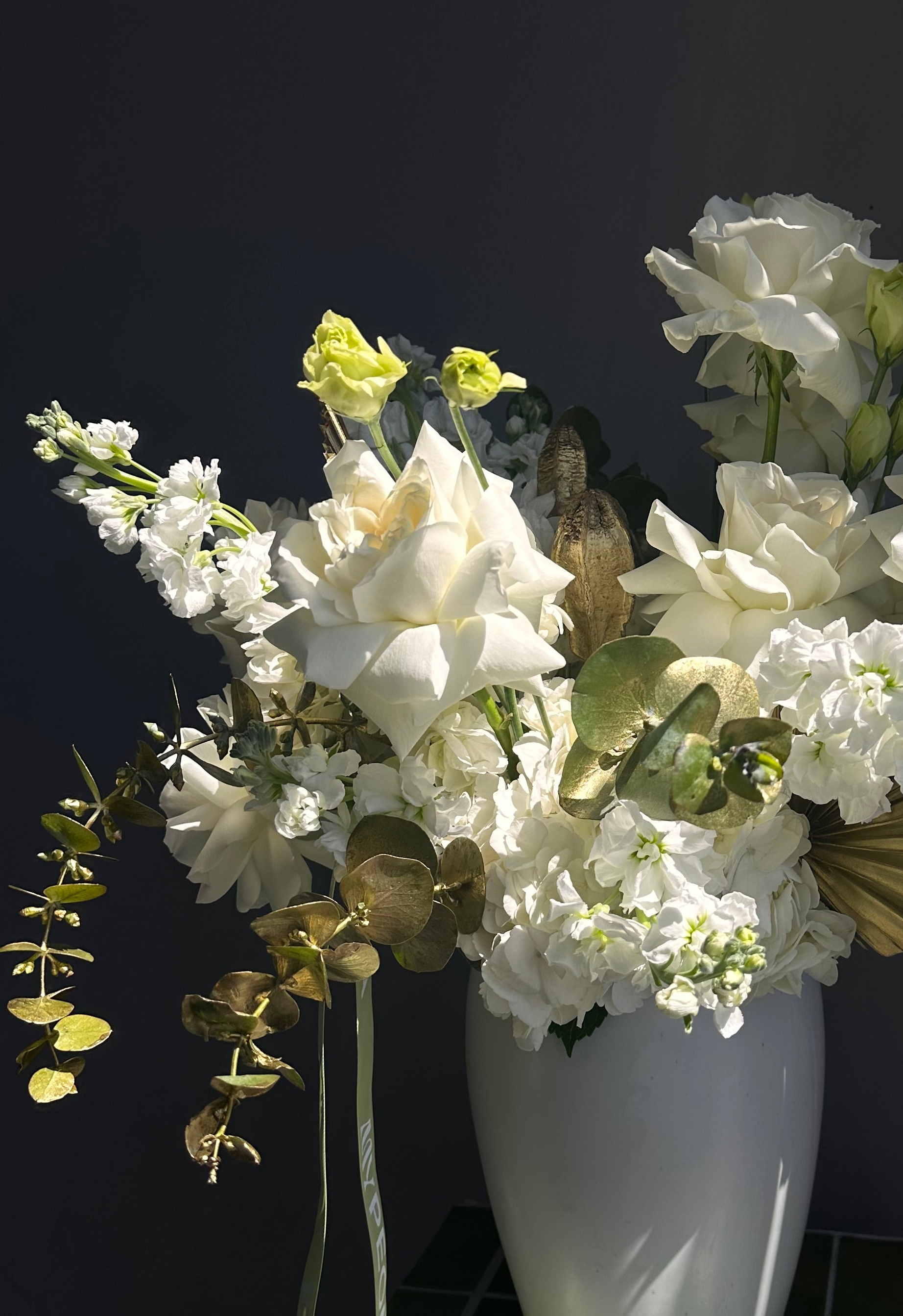 Interior arrangement “Del Mar“ - peony roses, ranunculus, calla lily (ONLY MIAMI)