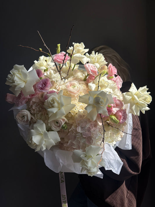 Bouquet “Angel Kiss” — ranunculus, roses, hydrangea