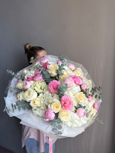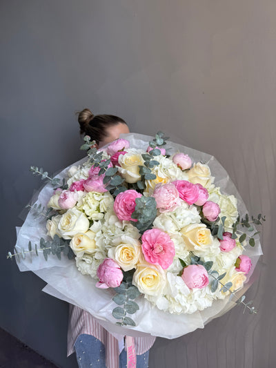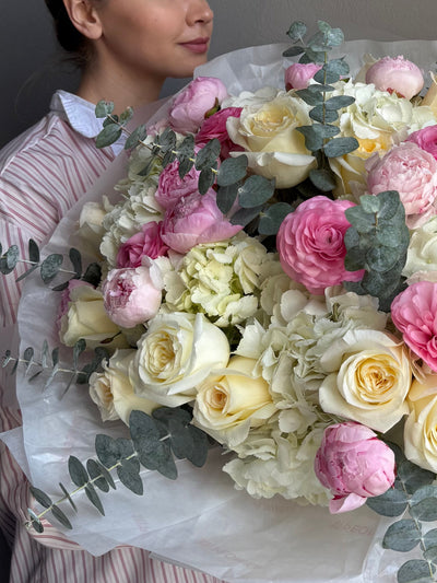 Stylish massive flower bouquets never go out of style. Such arrangements look stunning, which is why they are often chosen as gifts. The biggest flowers bouquet is a dream for many women. If you want to buy a composition that impresses with its size, we offer the professional service Mypeonika. Our catalog features a wide range of large floral bouquet options to suit every taste. You can purchase your favorite design with convenient delivery in Miami. Our florists work with carefully selected fresh plants from the best suppliers. Paying attention to every detail, the expert creates a large flower arrangement that is sure to impress with its refined beauty.