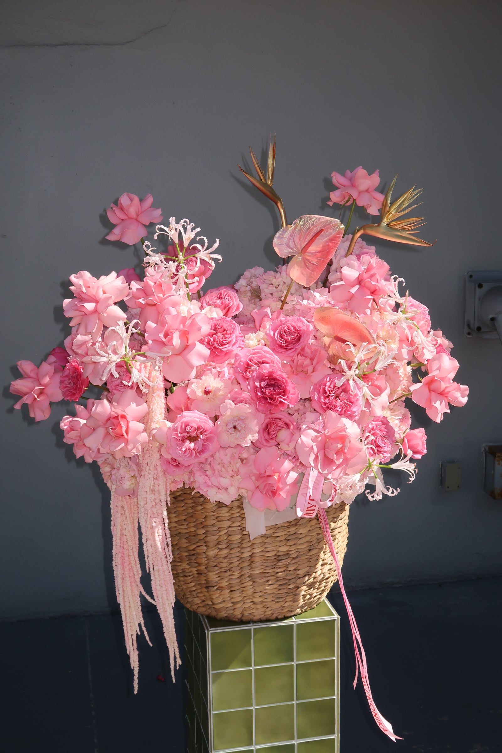 - Decor. Wrapping paper, ribbons, baskets, and other elements set the style of a large flower bouquet you can buy with delivery in Miami. Florists select decor to match the flowers, so the massive flower bouquets look impressive and fit beautifully into any interior.