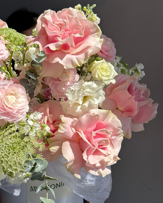Flower Box "Miss You" - Peony roses, ranunculus, lisianthus