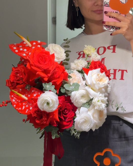 Wedding bouquet "Here & Now" - Ranunculus, Roses, Anthuriums
