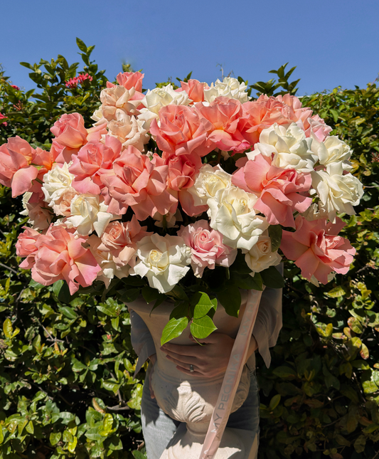 Flower box “Angel's cheeks” - french roses, ranunculuses
