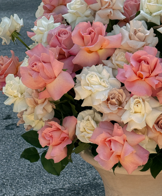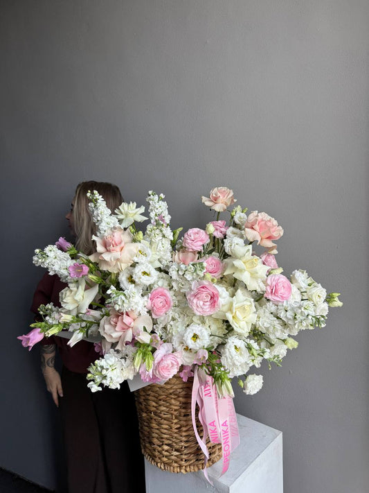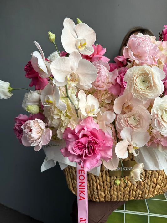 Flower Basket “Candy Crush” - french roses, ranunculuses